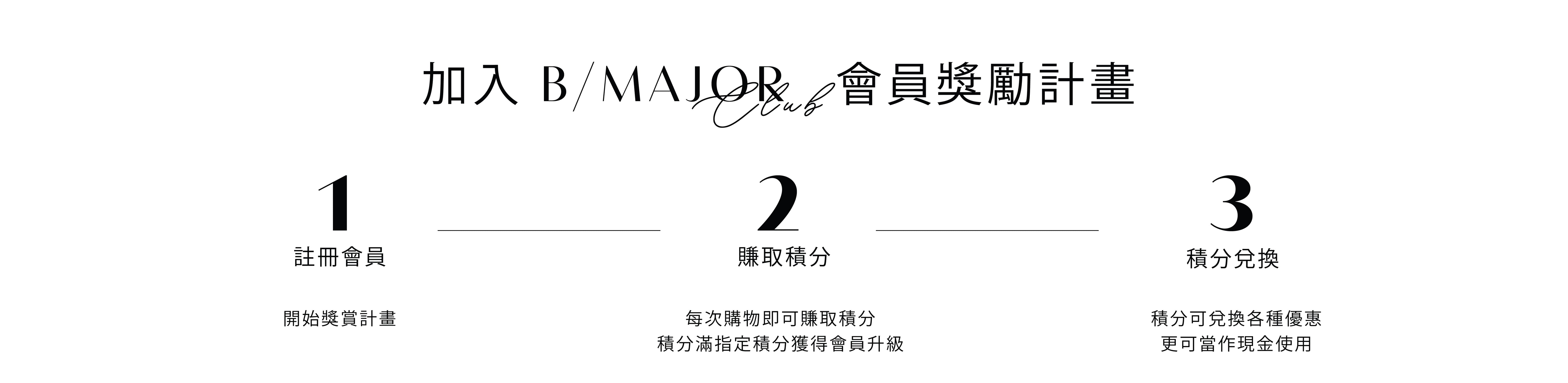 B/MAJOR CLUB會員獎賞計劃,讓您在購買產品時獲得獎勵!只要在網店或門市購物即可賺取積分。